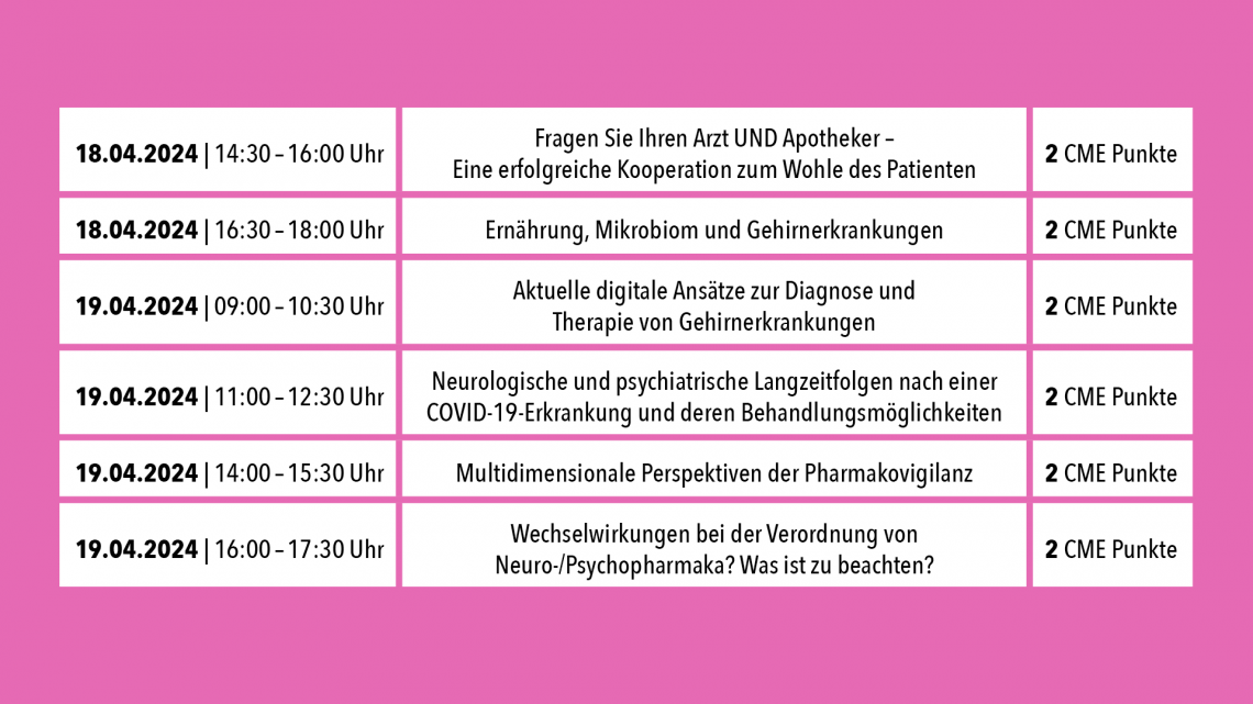 Alle Teilnehmenden, die die Live-Sitzungen verfolgt haben, erhalten am 23. April per E-Mail einen Link, über welchen Sie die CME-Bescheinigung anfordern können.